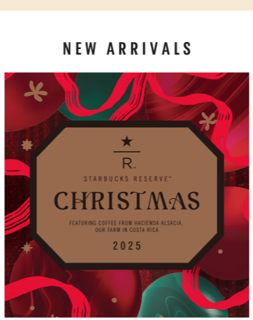 • 스타벅스 리워드 회원: 11/30까지 10% 할인 + 별 5개 증정.