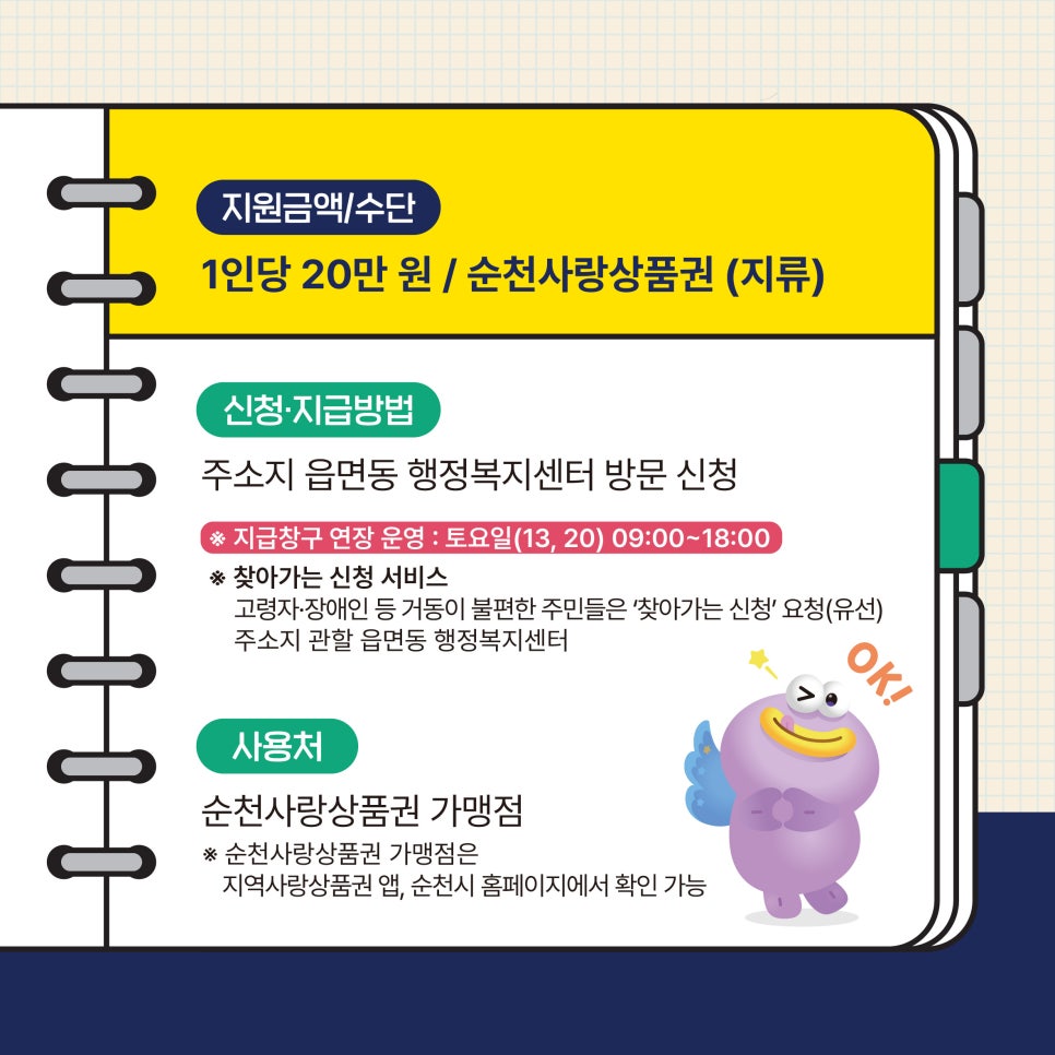 쉽게 말해, 지역 경제 활성화 + 시민 생활 안정을 위한 현금성 지원이에요. 순천시는 경기 둔화와 물가 상승으로 힘든 시민·소상공인을 돕기 위해 이 사업을 기획했어요.